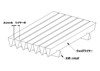 ウェッジワイヤースクリーンは逆三角形の断面をしたワイヤーが等間隔にサポートロッドと圧着溶接されることにより均一なスリットを形成する高精度スクリーンです。