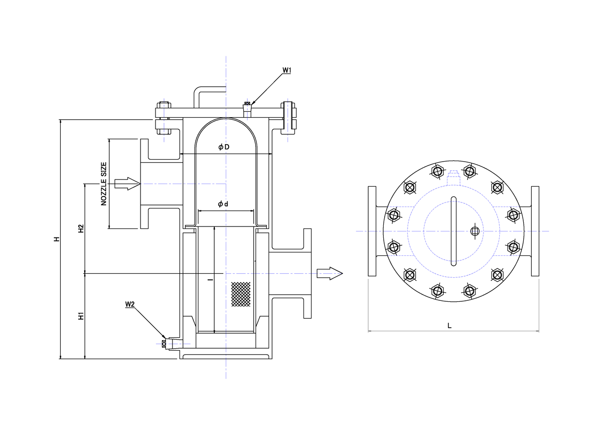 | 型式 | NOZZLE SIZE | L | φD | H | H1 | H2 | W1 | W2 | φd | l | |