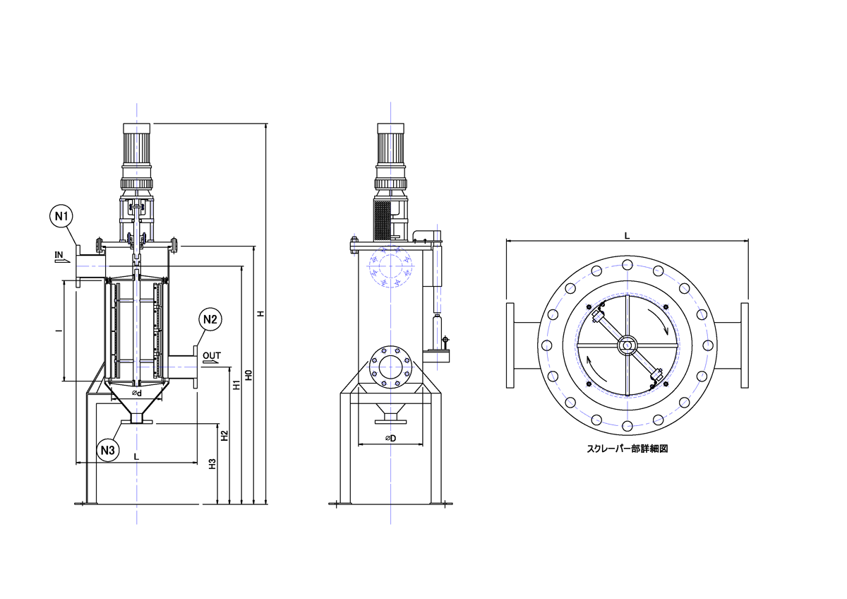 ゲル化物などの夾雑物は本体下部ドレンより手動又はタイマーで定期的に排出します。