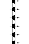 ・三角断面形状のため処理物質が通過するときの接触点が少ない