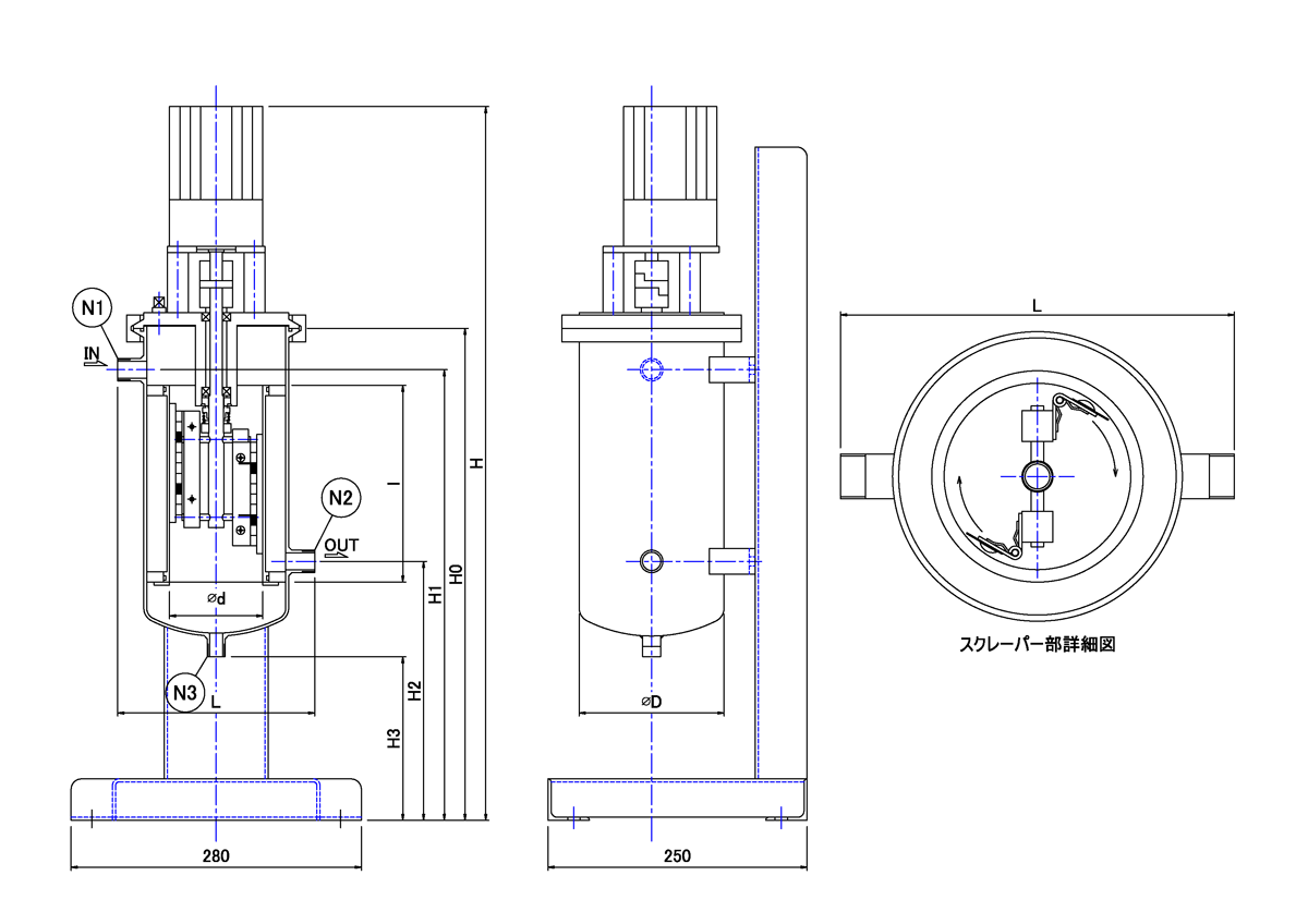 ゲル化物などの夾雑物は本体下部ドレンより手動又はタイマーで定期的に排出します。